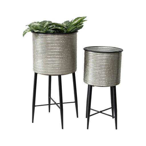 WANT HOME+GIFTLet your plants shine and be a standout statement piece in your home with the Set/2 Chic Barrel Pot Planters. Made from sturdy zinc in a galv...