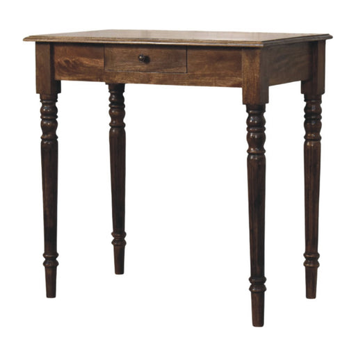 Artisanal InteriorsEnhance your space with this elegant and minimalist dressing table. Crafted from 100% solid mango wood in a rich chestnut finish, it boasts three s...