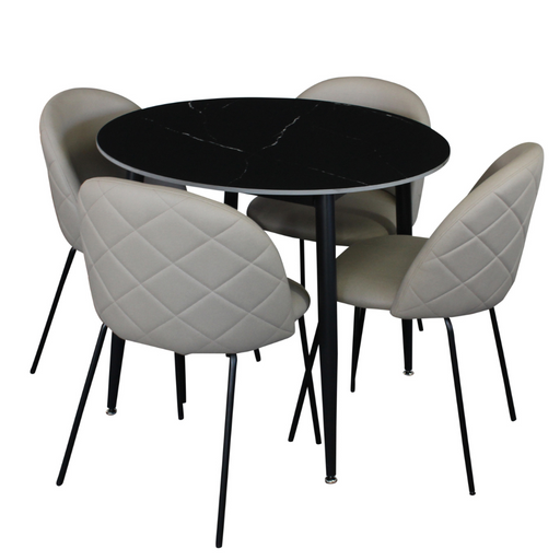 View full detailsFiore 5 Pce Round Dining Black Marble with Florin Beige Technology Fabric Chairs