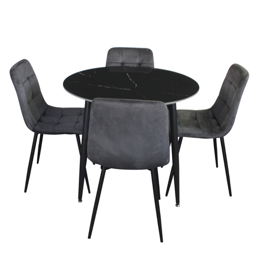 View full detailsFiore 5 Pce Round Dining Black Marble/Grey Velvet Chairs