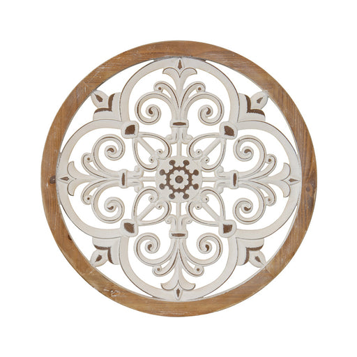 Add a touch of French romance to your space with this beautiful Fleur Moulded 60cm Wall Art. A quality MDF circular piece in a natural and distress...