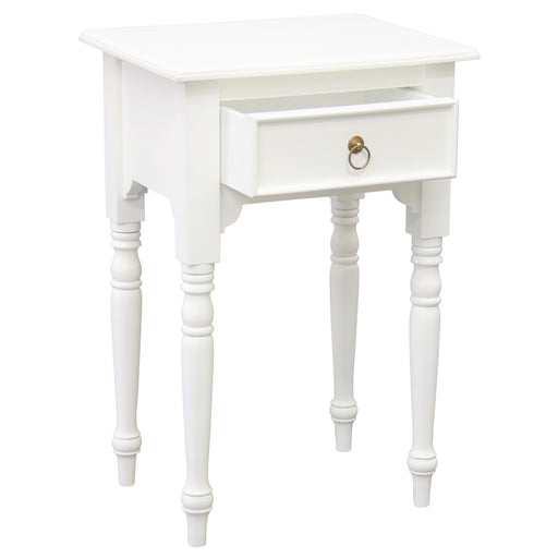 View full detailsHuntely 1-Drawer Turn Leg Side Table (White)