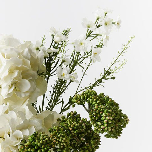 View full detailsHydrangea Larkspur Mix in Vase White 43cmw x 70cmh (FI9948WH)