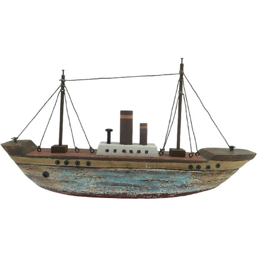 Handcrafted Ship w/Red + Blue Wash