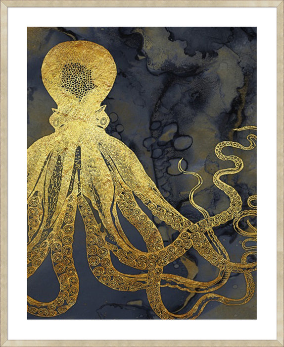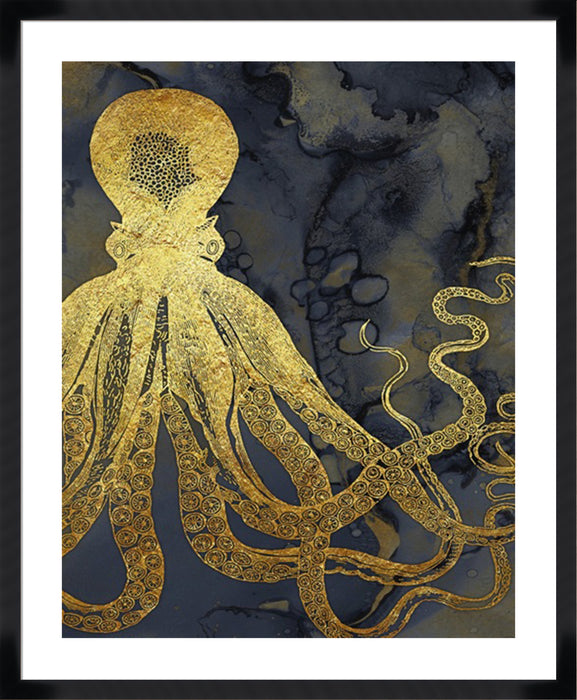 Octopus Ink Gold & Blue I - 5cm White Border