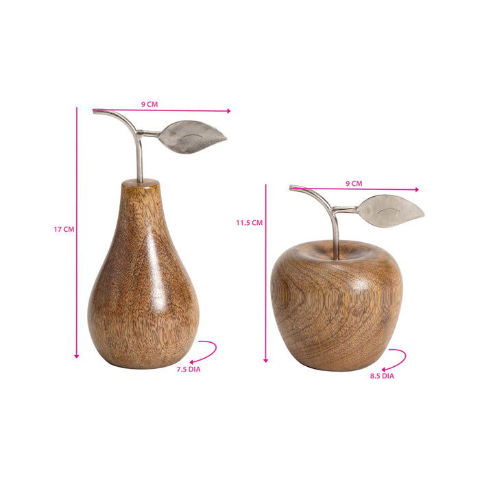Set/2 Asst Handcrafted Apple & Pear w/Antique Silver Leaf